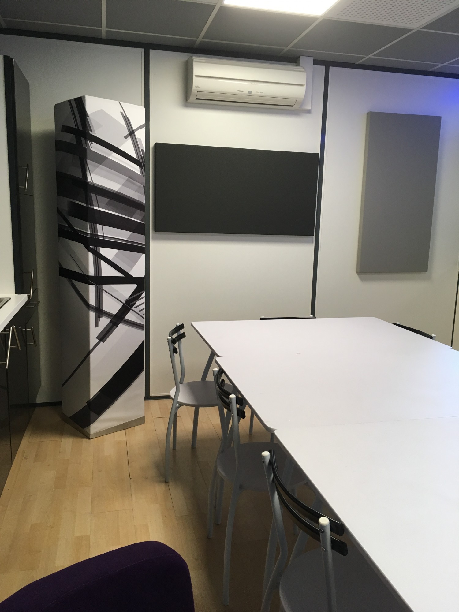 Pour apporter du confort acoustique, mais également visuel, nous avons mis en place des panneaux LUGN et un totem.