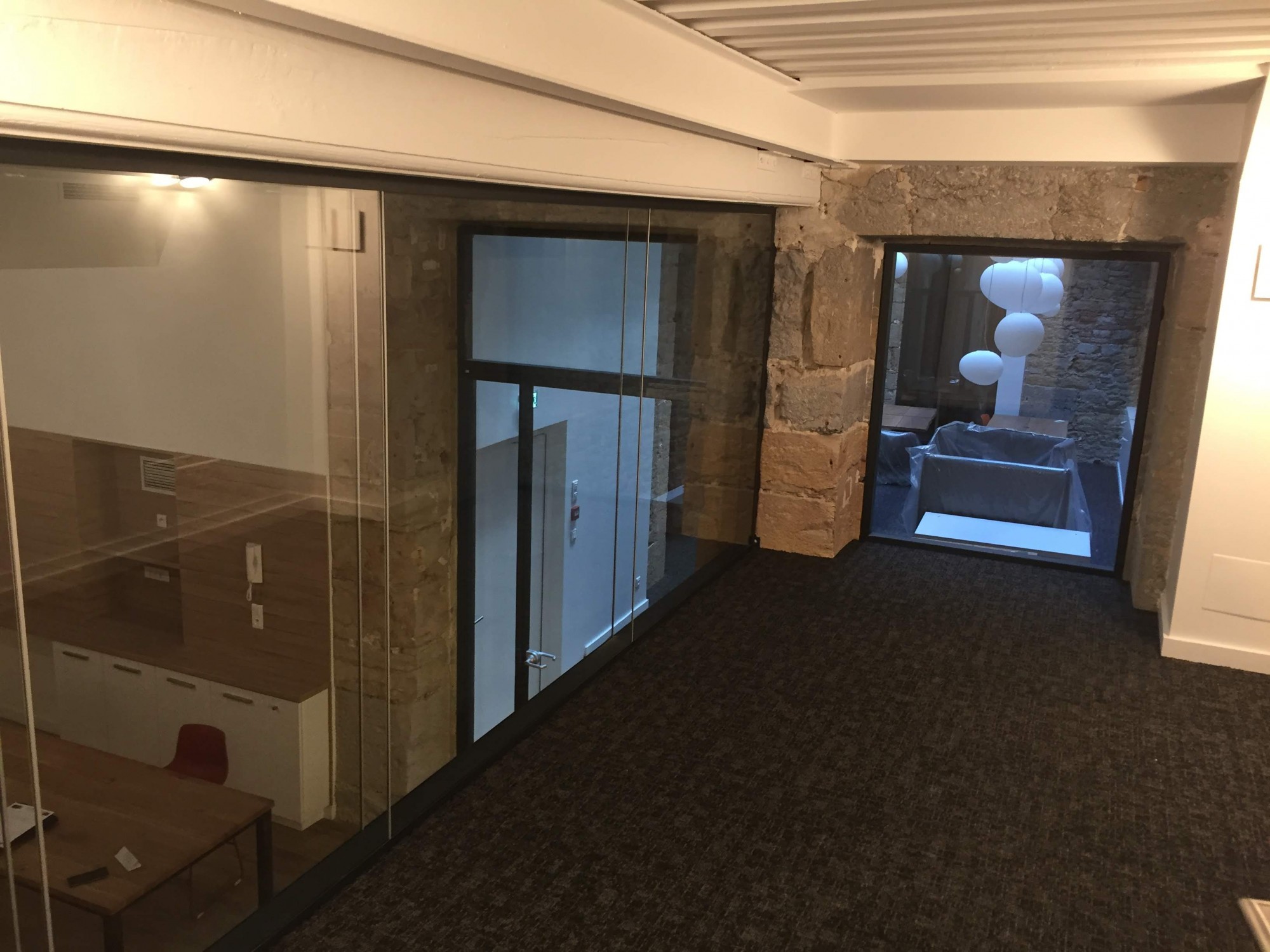 Après l'intervention des maçons, les équipes de poses de Cloisor sont intervenues pour fermer les différentes ouvertures créées dans la pierre grâce à l'installation de cloisons vitrées toute hauteur.