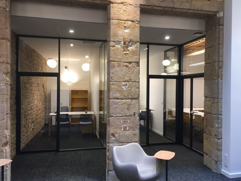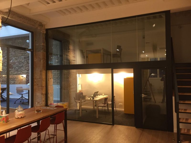 Ces cloisons permettent de laisser passer la lumière dans un espace qui manquait de luminosité auparavant, mais également de créer des espaces de travail autonomes et isolés du bruit.