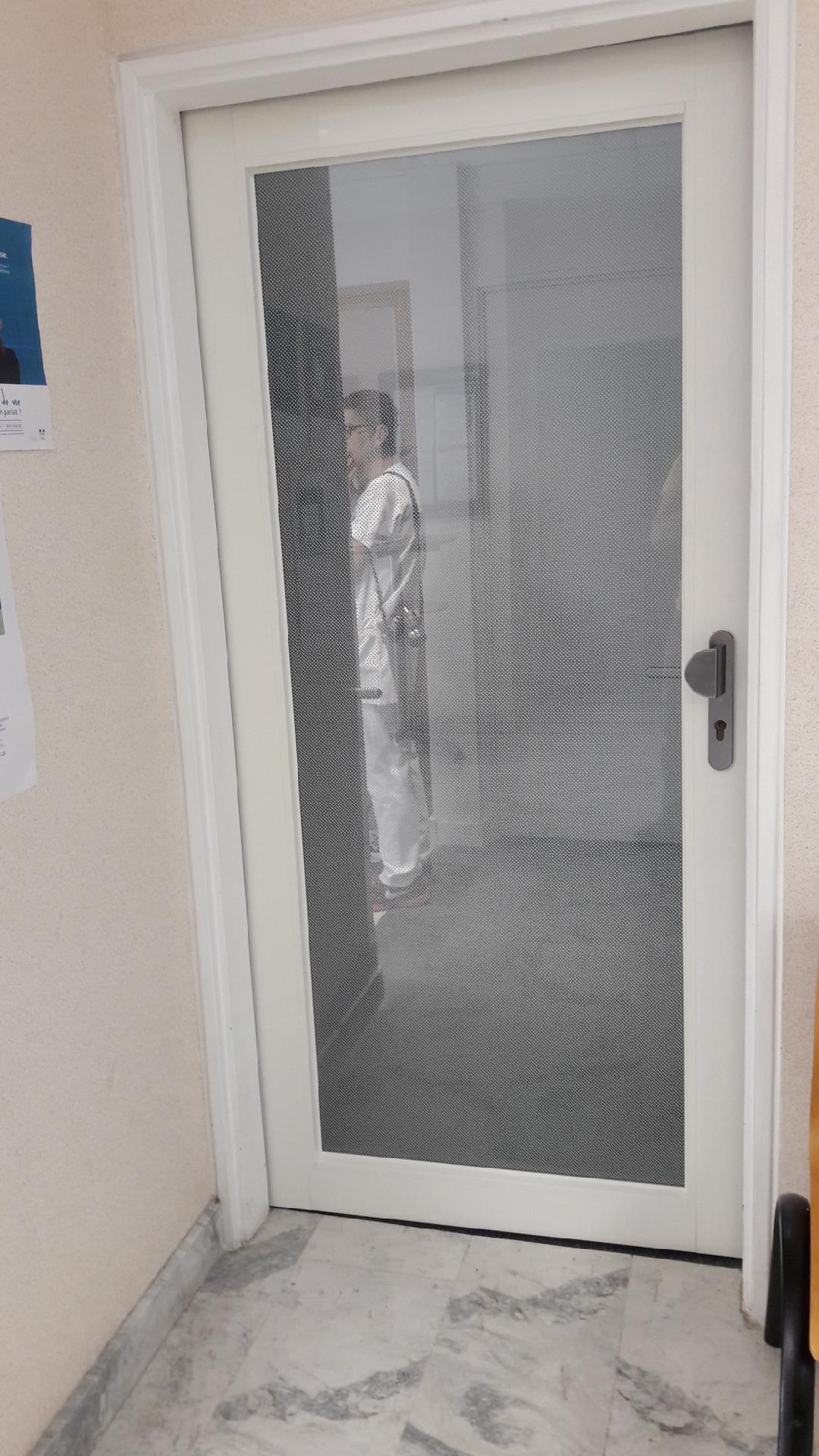 Nous avons également intégré de la sérigraphie, un guichet coulissant et une porte.