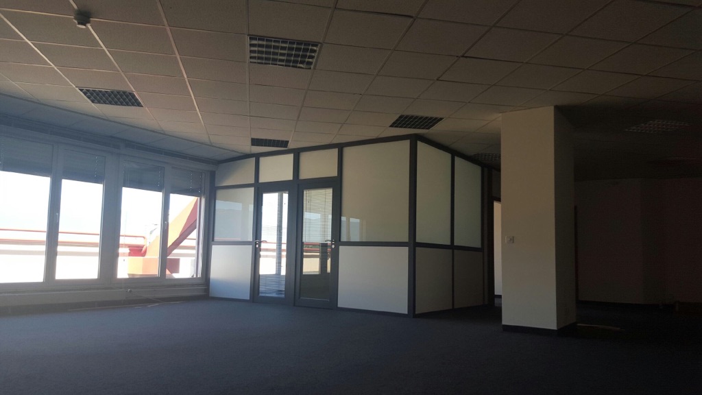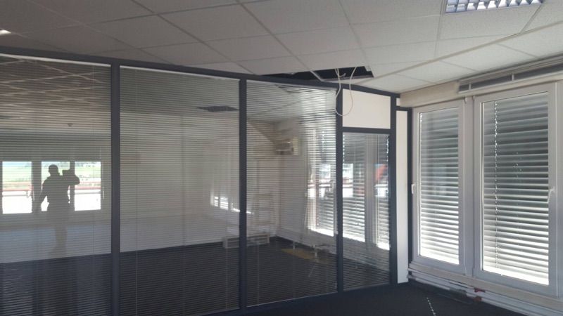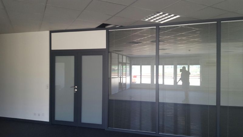 -création de deux bureaux : Mise en place des cloisons semi-vitrées sur allège simple vitrage avec vitrophanie;