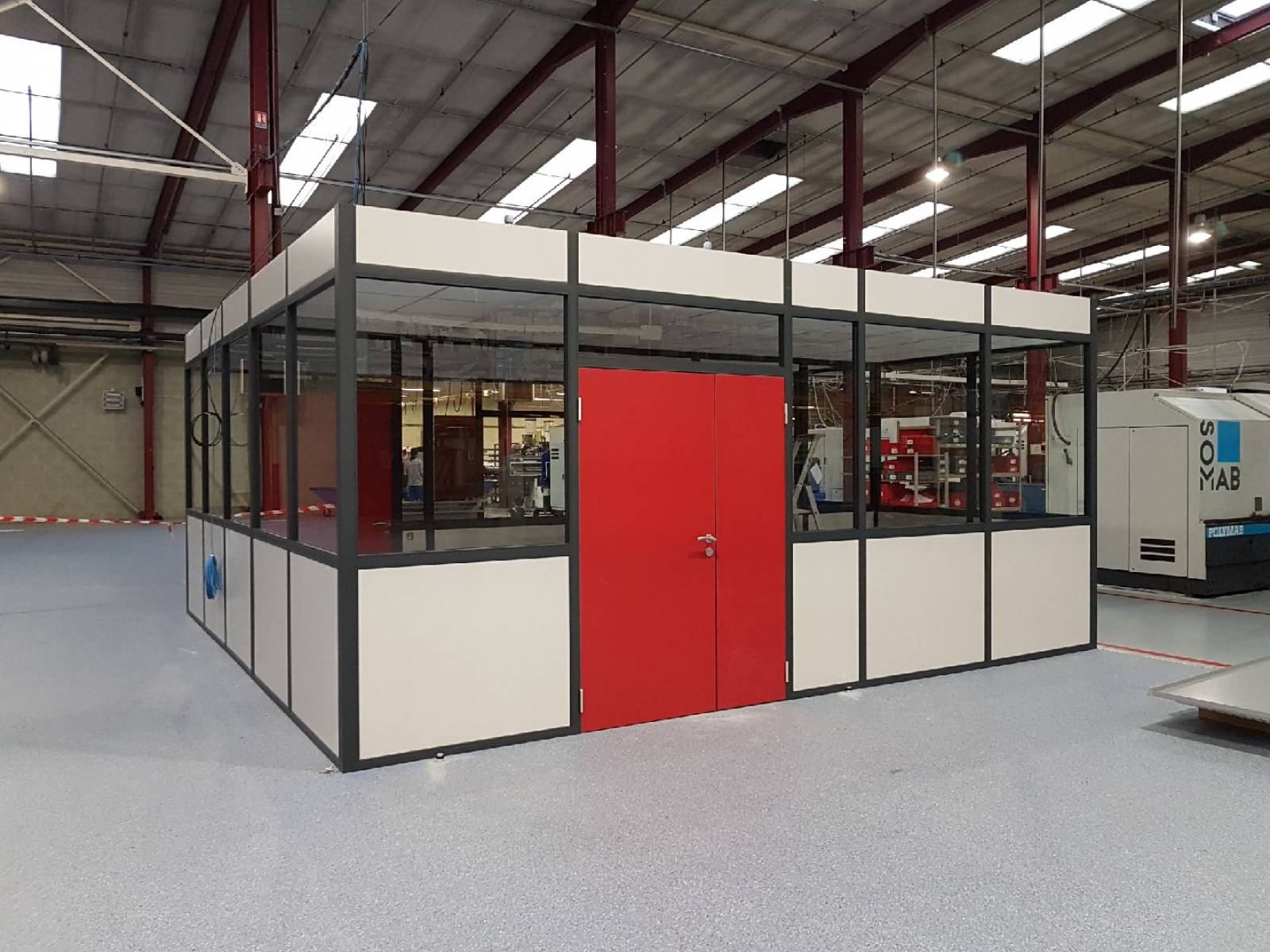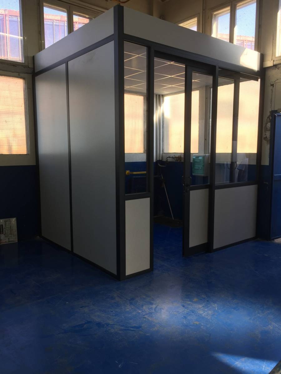 Nous créons aussi des cabines autonomes pour le milieu industrielle, grâce à la mise en place d'un faux plafond.