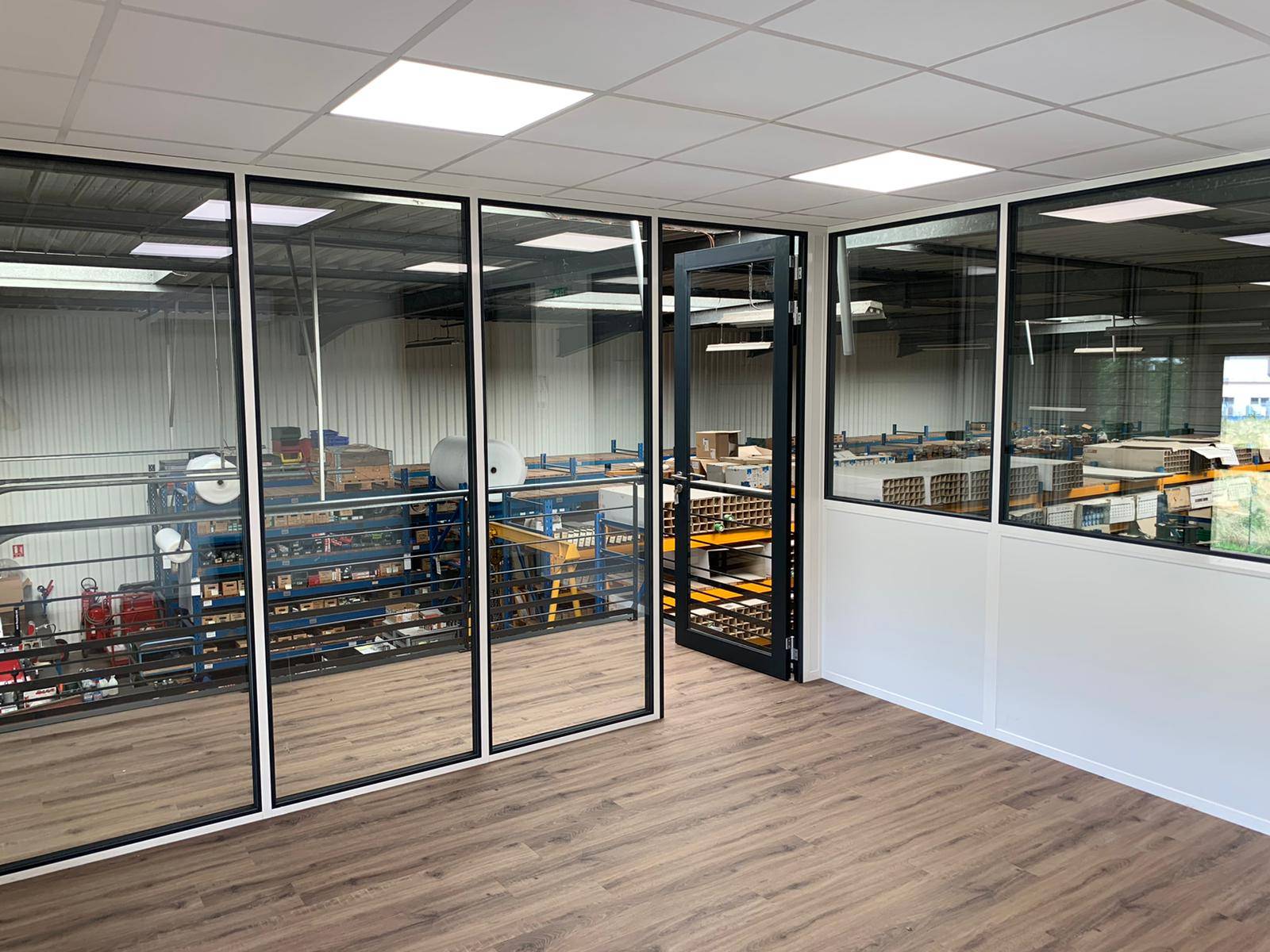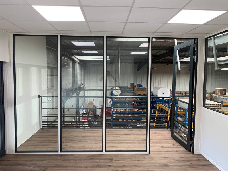 Son choix s’est porté sur la cloison aluminium, pour l’amovibilité de celle-ci, et la possibilité de créer des surfaces entièrement ou semi-vitrées. Enfin, c’est également l’aspect « produit clef en mains » qui a séduit notre client.
