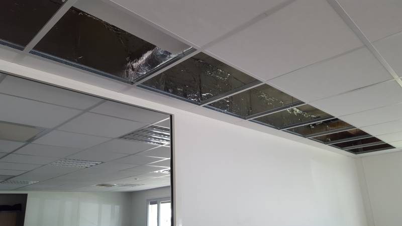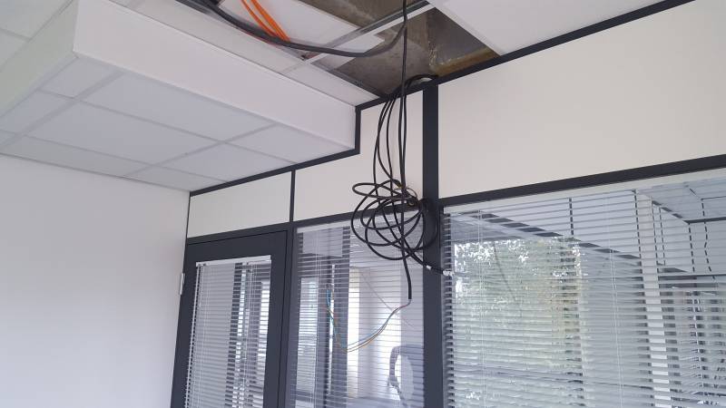 Notre client avait besoin d'isoler phoniquement ses bureaux, mais également de cacher les fils qui passent au dessus de ses salariés.