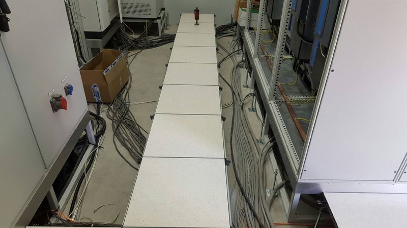 Le plancher surélevé est composé de vérins, et de dalles. Les vérins permettent d'apporter de la hauteur afin de faire passer le câblage, mais également d'effacer les différences de hauteur d'un sol par exemple ! Les dalles du faux-plancher viennent ensuite se déposer sur les traverses du plancher crée.