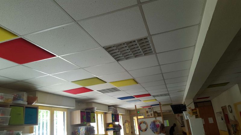 Résultat ? Des panneaux colorés sont venus s'aimanter sur les plafonds, pour le plus grand plaisir des enfants.