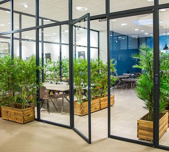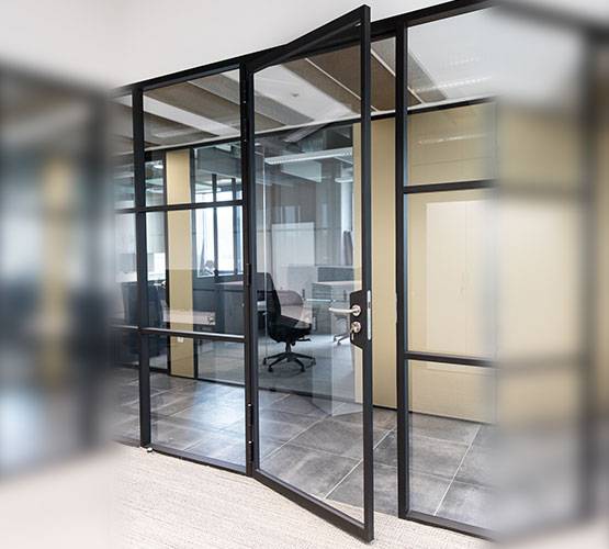 La porte TERTIAL est une porte de bureau vitrée à ossature aluminium affinée. Conçue pour s'intégrer dans le secteur tertiaire. Battante ou coulissante, elle offre un design contemporain et léger qui en fait une porte de bureau exceptionnelle.