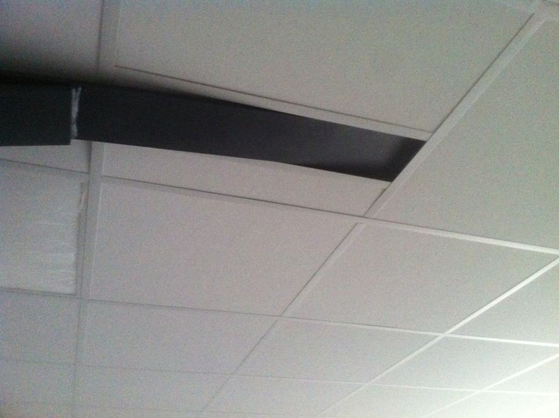 Le faux plafond, s'adapte parfaitement à des espaces difficiles d'accès ou à des espaces encombrés comme ceux montrés ci-contre.
